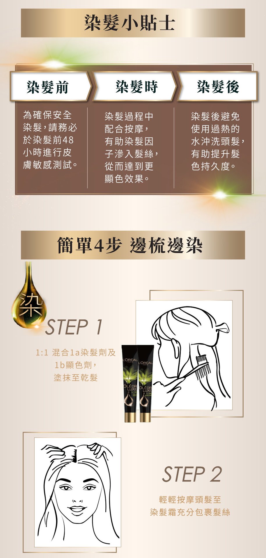 OLEOR LUXE brings a new hair color experience. The formula contains 60% oil1 and is equipped with O.D.S. oil transmission technology to achieve outstanding coloring effect and hair care at the same time.