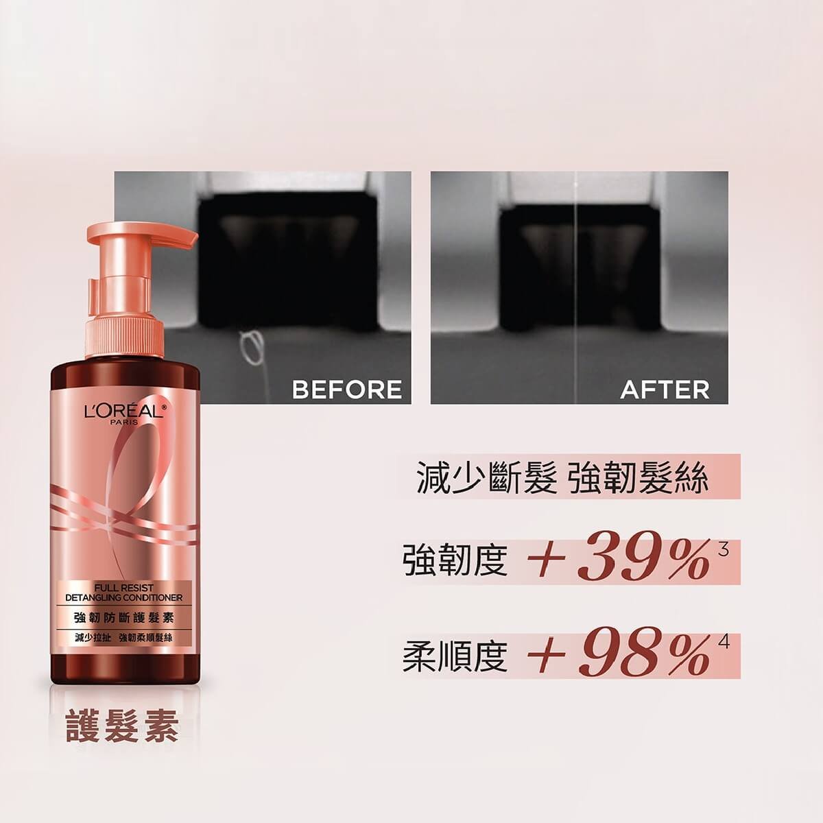Full Resist Hair Detangling Conditioner, reduces hair breakage and pulling, increases smoothness up to 98%*.