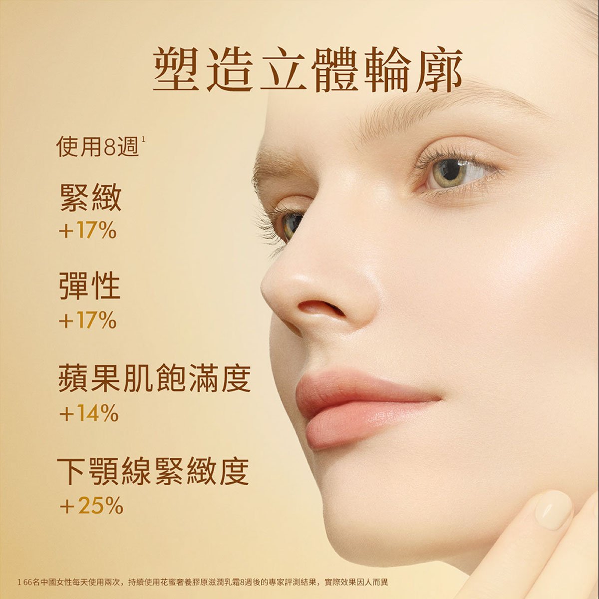 166名中國女性每天使用兩次,持續使用花蜜奢養膠原滋潤乳霜8週後的專家評測結果,實際效果因人而異