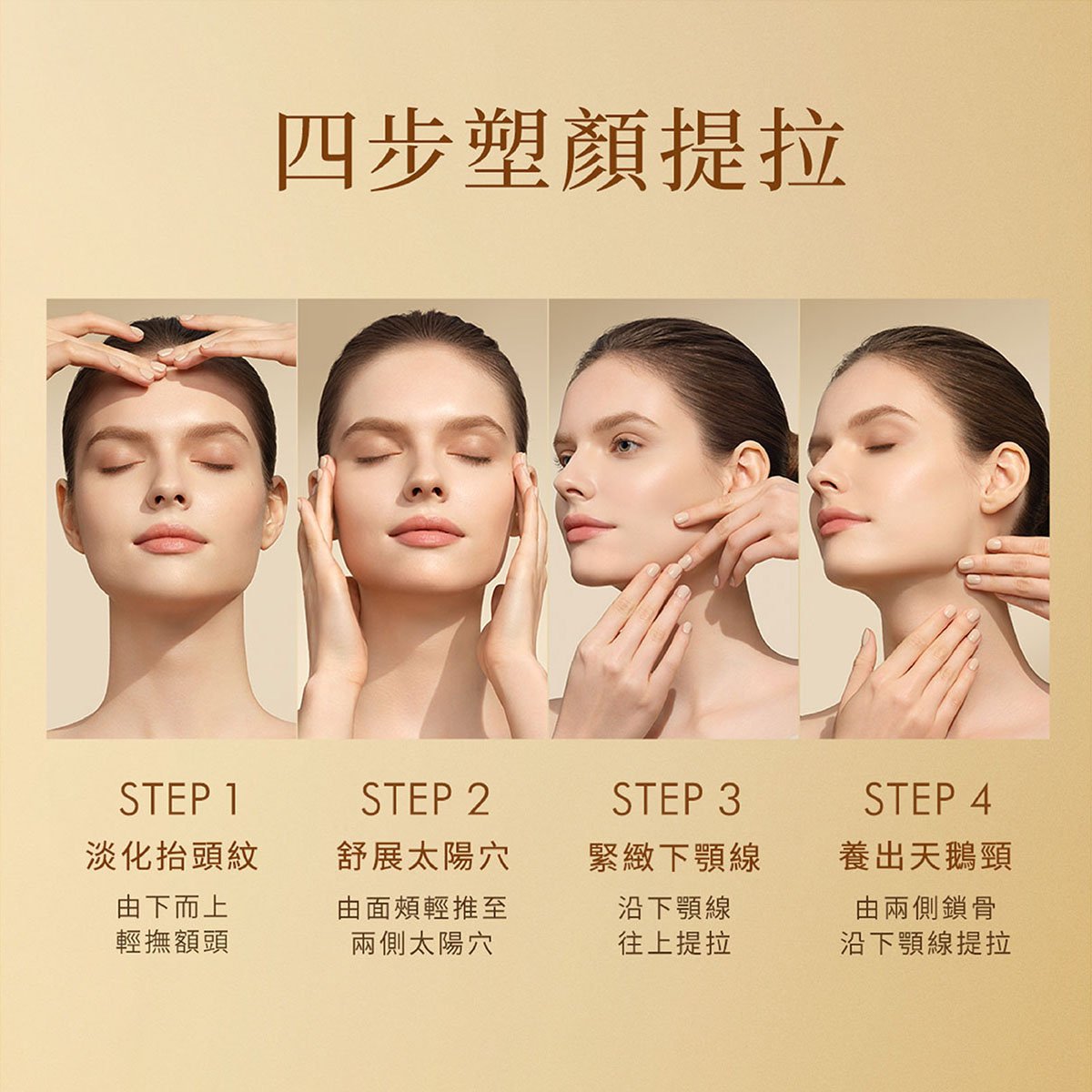 2. 早上妝前適量使用使底妝更貼服,達至日間滋潤。晚上可以配搭按摩手法,由下至上,由内到外,提拉養膚。
