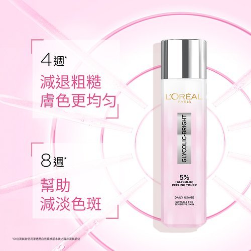 淨透亮白光感煥肌水 蘊含 5% GLYCOLIC ACID (甘醇酸) - 最小分子果酸AHA,溫和去角質成份+