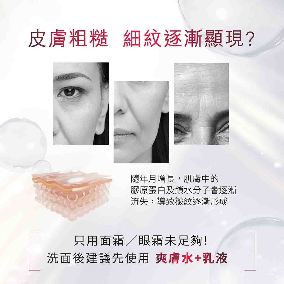 REVITALIFT活力緊緻修護乳液蘊含三大抗老成分,幫助緊緻細紋。